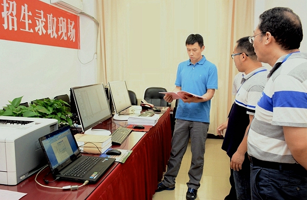 7月11日,副校长刘勇在党委委员、教务处处长李超等人的陪同下到英国365上市公司2018年高考招生录取现场检查指导招生录取工作,慰问招生录取工作人员。