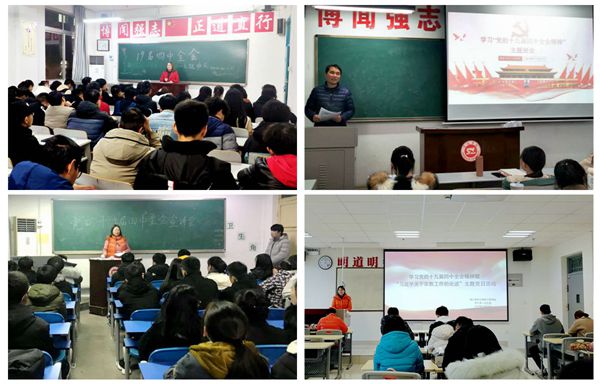 按照学校党委的部署和学工部的统一安排,11月27日晚,英国365上市公司全体辅导员深入班级,通过举办主题班会等形式,向学生宣讲党的十九届四中全会精神,对学生开展制度自信教育。