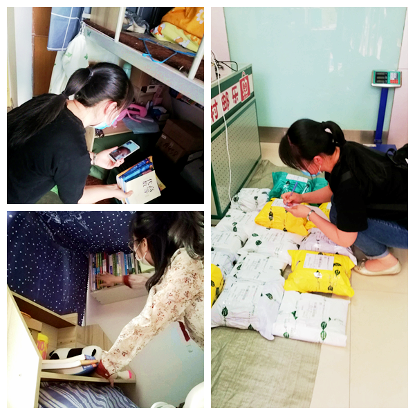 “老师,单位通知我尽快签约,可我的三方还在宿舍,能不能帮我取一下?”“导员,上学期高数(1)好不容易没有挂科,现在《高数(2)》快结课了,要是再没有书,这学期肯定挂了,能不能帮帮我!”面对学生的要求,数计学院学工人员主动变身校园“快递员”,“云”接单后在学生宿舍进行直播“带货”,小到一张纸,大到笔记本电脑都在他们的下单范围。“你看看是不是这本书?英语书要不要?”“你的柜子钥匙在哪里?是在床垫靠门的一边下面压着吗?”“你要拿哪几件衣服?是这件吗?还有那件,需要吗?”“宿舍阳台的几盆植物是谁的呀,已经干瘪了,我给帮忙浇点水。”找到东西后,辅导员们会逐一贴上标签仔细核对,以免物品混淆,到快递寄送点后也会一直监督物品打包、物流信息填写,还会对个别建档立卡学生提供包邮服务。