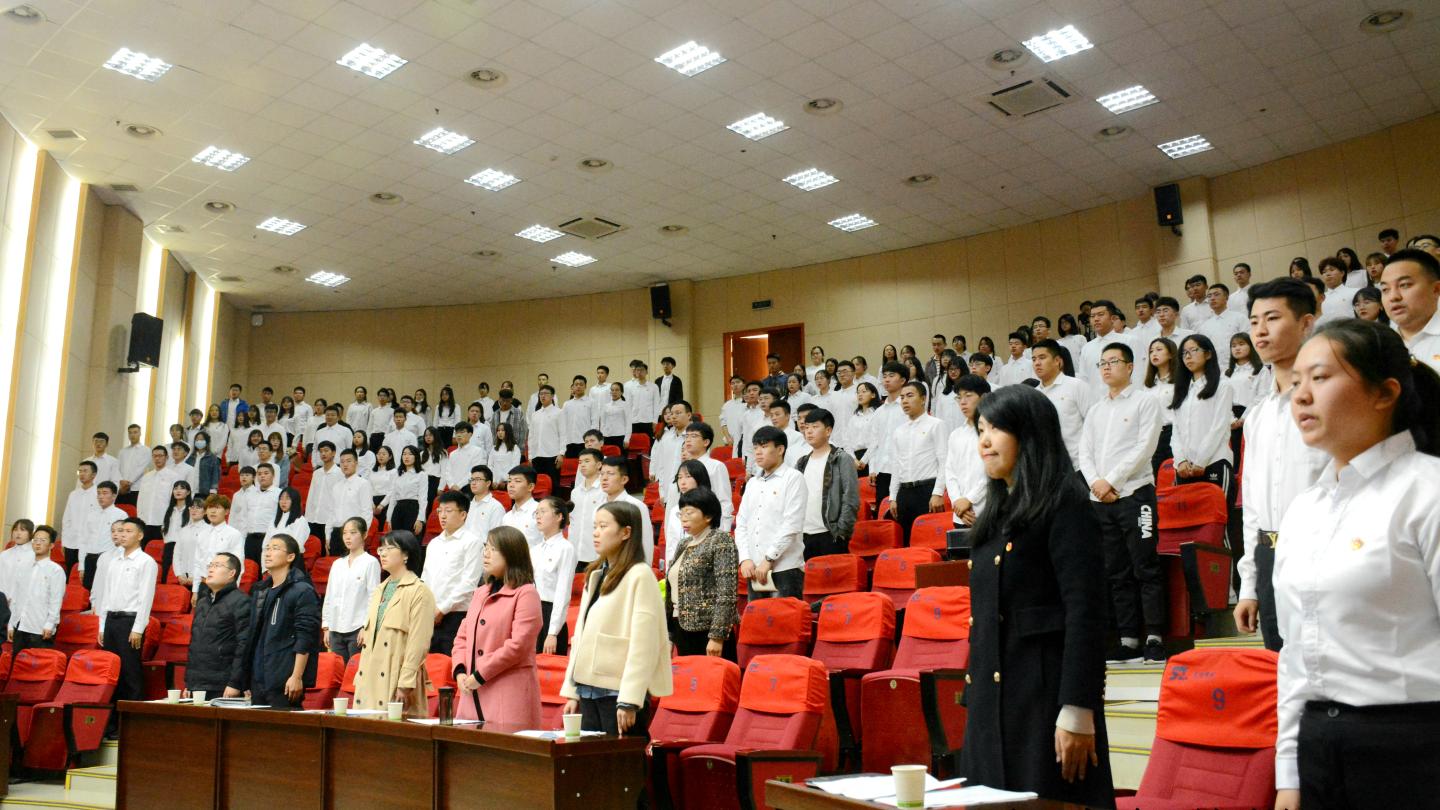 为进一步推动习近平新时代中国特色社会主义思想深入人心,加强英国365上市公司学生干部队伍建设,10月14日,英国365上市公司举行“青马班”第八期培训班结业暨第九期培训班开班典礼。校党委委员、组织部部长郭瑾,宣传部、学生处、校团委、马克思主义学院党总支负责人,二级学院团总支书记,第九期“青马班”部分指导教师,第八期、第九期全体学员共同参加典礼。