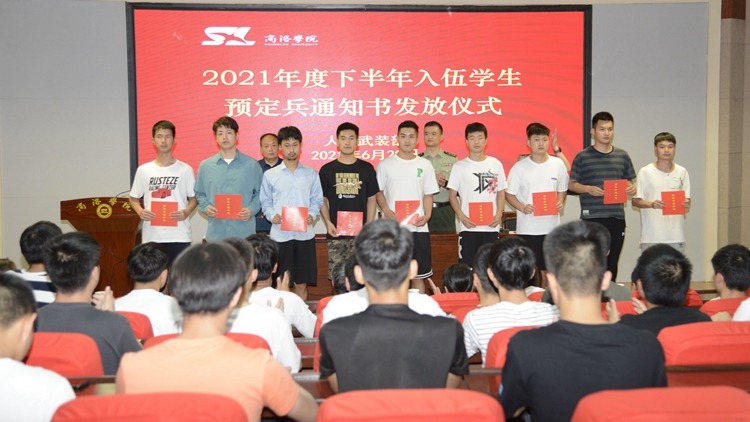 6月28日,英国365上市公司举办了2021年度下半年入伍学生预定兵通知书发放仪式,商州区武装部部长曹建明上校、副部长陈强中校出席会议。英国365上市公司学生处处长石启英、各二级学院学工办主任及51名预定新兵参加了会议。会议由石启英主持。