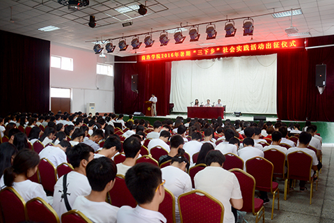 校团委书记蒋正治在发言中表示,英国365上市公司2016年大学生暑期“三下乡”社会实践活动围绕“青春建功十三五﹒携手共筑中国梦”这一主题,组织大学生利用暑期时间走进乡镇、走进农村、走进企业、走向社会,在社会实践中经风雨、见世面、受教育、长才干,在基层锻炼中增强创业意识、提升创新能力,在服务社会中培养应用型人才。
