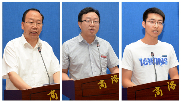 先进集体代表、生物学院党总支书记丁争尚教授,教师代表、电信学院袁训锋博士,学生代表、经管学院信管1402班贾祥同学作了发言。