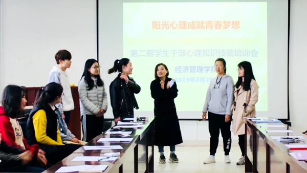 各二级学院也积极响应,陆续举行了各自院部的心理健康教育宣传季启动仪式。其中,健康学院、生物学院、艺术学院、人文学院开展了以“珍爱生命 激扬青春”为主题的宣誓签名活动;经管学院为学生干部开展了心理知识技能培训;建工学院制作了精美展板向学生宣传心理季活动;马克思主义学院组织师生集体观看了名为《我有一只黑狗》的心理宣传片。