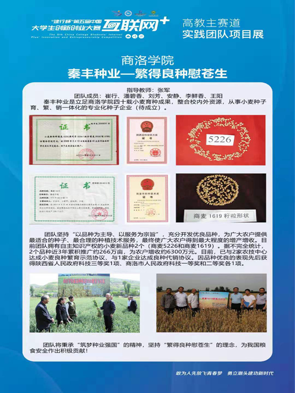 晚上大约十点,我们团队师生接到教务处苏铁柱老师电话:我们的项目——秦丰种业:繁得良种慰苍生——入围金奖了!我们几人顿时兴奋地像个孩子一样跳跃起来。我深深地松了口气,一年多的努力总算有了结果。