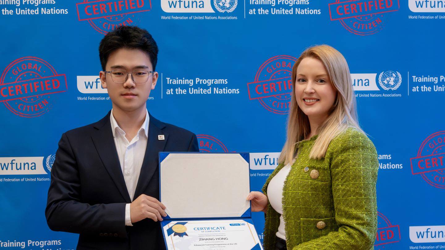 “选择比努力更重要,但正确的选择需要更清醒的认知。”当被记者问及成长关键词时,洪梓航这样回答。这位工科生选择站上联合国舞台,源自对自身发展的清晰规划。洪梓航的选拔经历颇具挑战——既要突破专业壁垒,在纯英文面试中展现对国际事务的深度认知,又要超越舒适区,将工科思维与全球治理需求精准对接。他坦言:“认清差距后的定向突破是关键。”正是这种清醒认知,让他在与来自国际关系、新闻传播等专业选手的竞争中,凭借对“‘一带一路’新能源建设”的独到见解脱颖而出。
