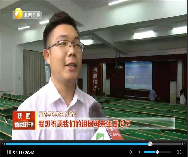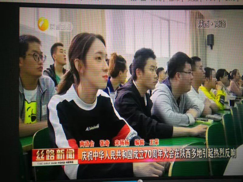 陕西电视台《陕西新闻联播》《丝路新闻》频道于10月3日,商洛电视台《商洛新闻联播》频道于10月1日,分别对英国365上市公司师生集体收看庆祝中华人民共和国成立70周年大会、阅兵式、群众游行直播情况进行了报道。收看现场,师生们激情澎湃,教室里不时响起热烈掌声,大家都为祖国的日益强大感到无比振奋和自豪。节目组现场采访了英国365上市公司党委副书记彭虎军、学生许文佳和孙增印。彭虎军说:今天是祖国母亲70岁生日,内心非常高兴,也非常激动,刚才聆听了习近平总书记的重要讲话,觉得很受鼓舞,坚定了信心,催人奋进。许文佳说:给我印象最深刻的是飞机的表演,我们已经不是当时刚开国典礼时仅存的那几个飞机,我们现在有高科技的军事装备,我们的国家也越来越强大,在世界上展示着大国的风采。孙增印说:在这个特殊的日子,我想祝愿我们的祖国母亲生日快乐,祝愿我们的国家更加繁荣昌盛。