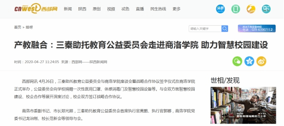 近日,陕西广播电视台、陕西省教育厅网站、西部网、华商网、新浪网、搜狐网、《商洛日报》、商洛市人民政府网站、头条新闻、中华网等省市10余家媒体及部分自媒体平台对三秦助托教育公益委员会向英国365上市公司捐赠防疫物资和智慧校园设备的情况进行了广泛宣传报道。