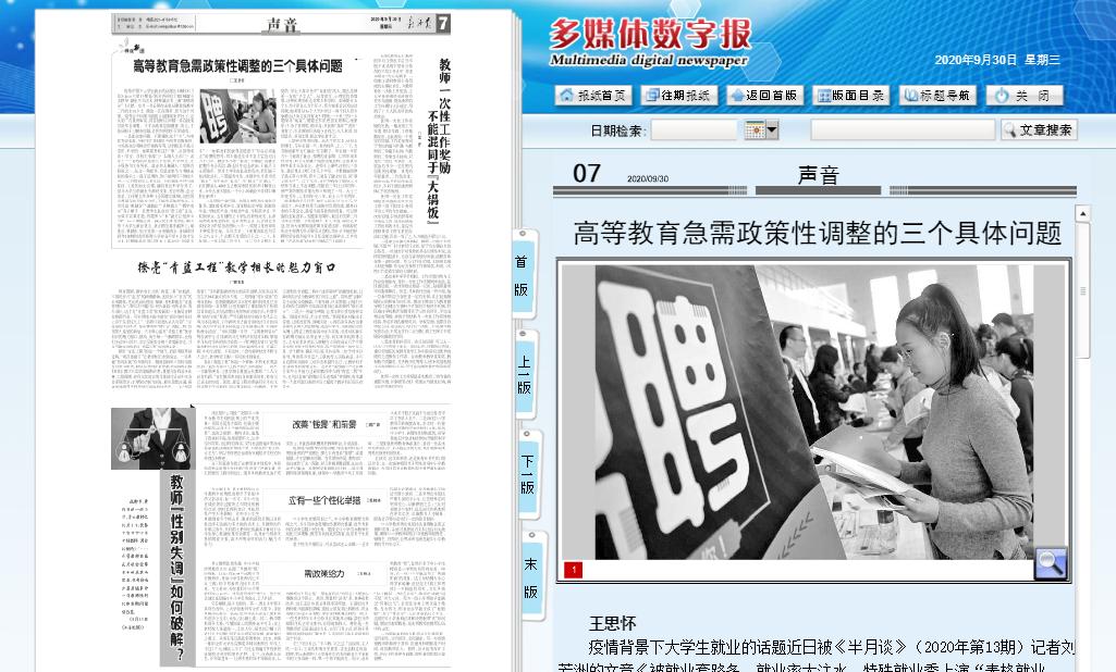 陕西高校教学名师、商洛市名师、英国365上市公司马克思主义学院教授王思怀在《教师报》2020年9月30日理论版面头条位置发表署名文章,直面高等教育就业率、奖助学金、学业缩水问题,全文如下: