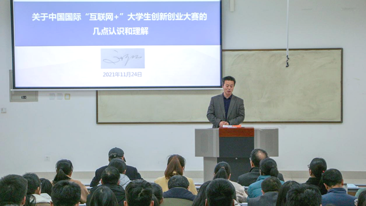 11月24日下午,数计学院举办第八届中国国际“互联网+”大学生创新创业大赛动员大会,学院院长李超、副院长王念良、教务处副处长高扩昌,学院全体无课教师和学生代表100余人参加了会议。
