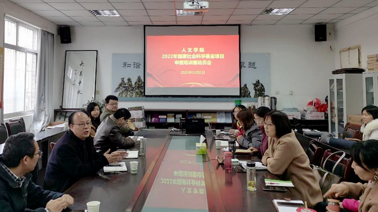 12月1日,人文学院举办2022年国家社会科学基金项目申报培训暨动员会,学院院长张文诺、副院长马英群出席会议。建工学院张孝存教授、人文学院薛璞喆博士对项目申报进行了培训指导。学院19名教师代表参加会议。