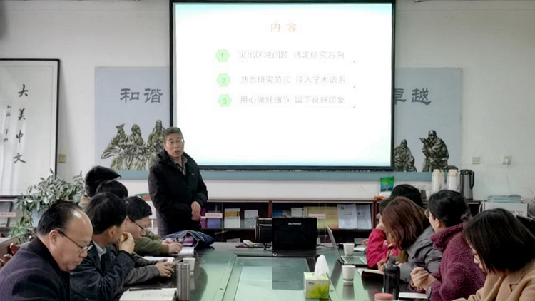 薛璞喆博士以《浅谈国社科项目之文本生成》为题,从历史学视角,结合实际案例,从项目选题、文本书写和学术体悟三个方面详细介绍了项目申报的思考过程和成功经验。他建议,项目研究要坚持问题导向,申报文本的书写要“以问题带动内容,以内容深化问题”,在论述中不断细化问题,强化选题主旨,强调选题意义;要扎实学术基础,自觉提升学术素养和创新能力;要增强团队意识,坚持虚心涵味、切己体察,在互动交流中学习先进经验、汲取智慧力量。