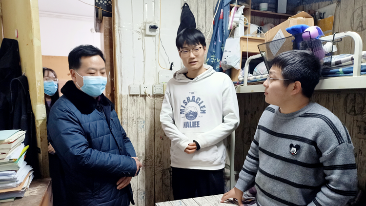 深入宿舍,问暖嘘寒。为了解学生返校后的生活与住宿情况,22日晚8点,数计学院党总支书记廉明,党总支副书记、副院长刘爱军带领全体学工人员深入学生宿舍走访,为返校学生送去关怀与温暖。走访期间,数计学院领导对寝室卫生及安全进行了检查,要求同学们尽快调整心态投入到新学期的学习和生活,叮嘱同学们如遇到生活或学习上的问题要及时向学院反映,学院会尽全力帮助大家排忧解难。学院亲切的问候和细心周到的服务,使同学们倍感温暖。