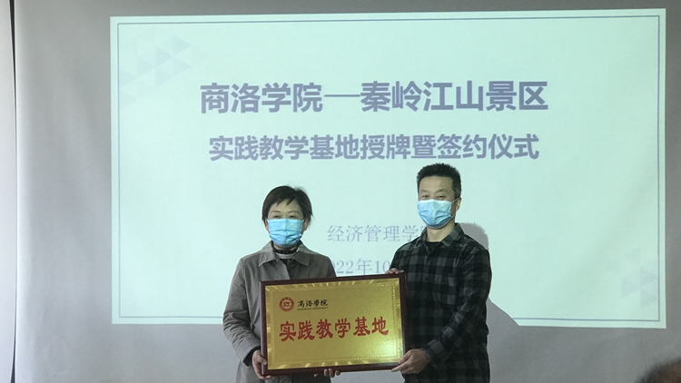高扩昌代表学校向秦岭江山景区授牌。经济管理学院副院长雷清和隋萍萍分别代表校企双方签署了《365公司校外实践教学基地协议书》合作协议书。