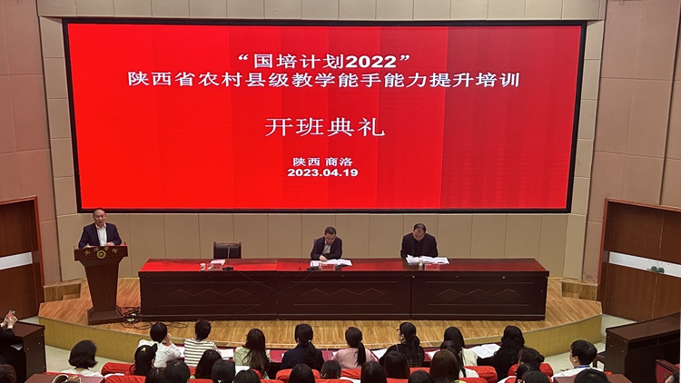 4月19日,国培计划(2022)陕西省农村县级(小学语文、小学数学)教学能手能力提升培训项目在英国365上市公司开班。继续教育学院院长付军昌及培训管理团队相关人员出席开班典礼。来自全省近百名小学教学能手老师参加了培训。开班典礼由继续教育学院副院长任新山主持。