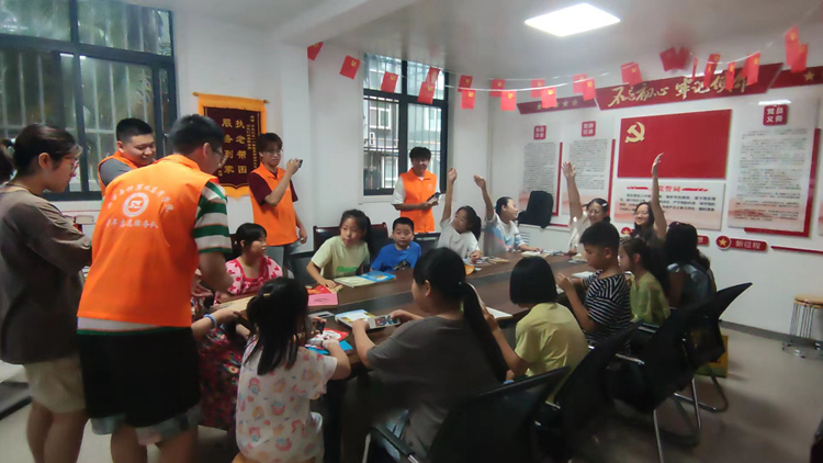 传承文化乐开颜。在社区工作人员的协助下,实践队成员开展了“弘扬传统文化,增强文化自信”的系列活动。首先,针对小朋友们在阅读中的错误习惯进行纠偏改正。随后,以“秋”为主题展开飞花令比拼,小朋友们兴致盎然,纷纷说出自己所学到的诗句。最后,实践队成员结合“长安三万里”这部电影,向小朋友们分享了李白的生平、唐诗的流派与发展。