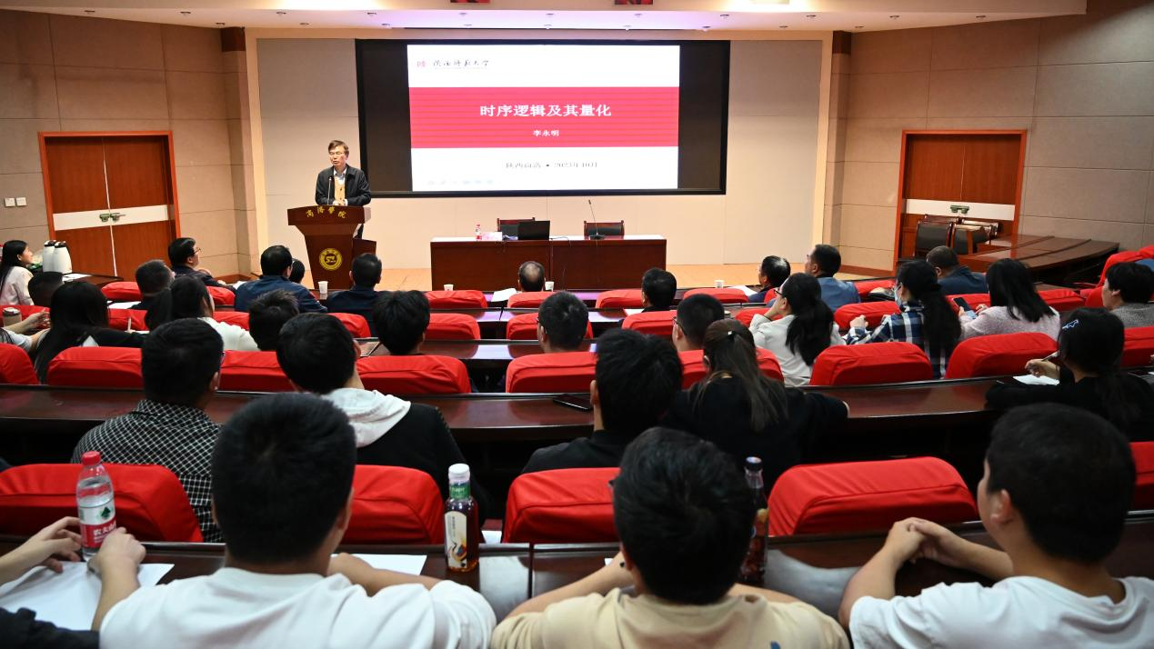 10月13日,数计学院邀请英国365上市公司客座教授、陕西师范大学博士生导师李永明教授来校作题为《时序逻辑及其量化》的学术报告。学院全体教师及80余名学生代表参加了报告会。报告会由数计学院副院长李会荣主持。
