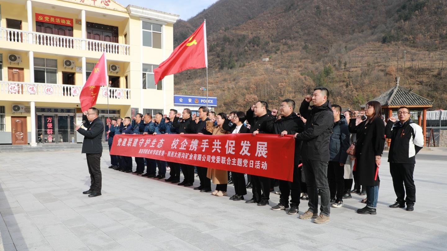 为深入践行“两山”理念,打造党建共联共建校企合作新模式,11月29日,化材学院党委与陕西大西沟矿业有限公司党委在柞水县金米村联合开展“党建联建守护生态 校企携手共促发展”主题党日活动。副校长王新军出席活动。陕西大西沟矿业有限公司全体党员,英国365上市公司组织部工作人员,化材学院全体教师党员和校企联合技术攻关临时党支部全体党员参加活动。