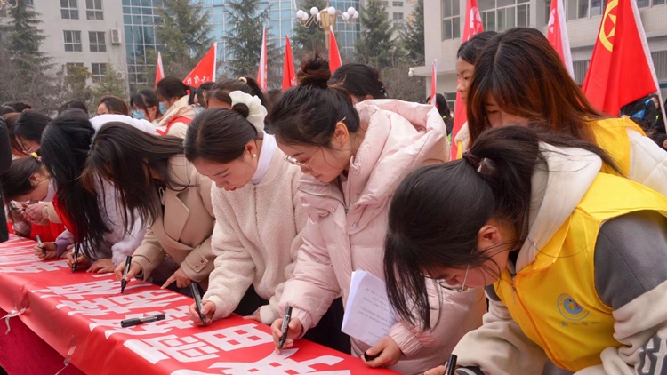 启动仪式上,团委教师王倩详细介绍了主题月系列活动安排;健康学院团总支书记吝雪敏向全体学生提出倡议,号召全体学生学习雷锋精神,争做雷锋精神的传播者、新时代的奋斗者;青年志愿者代表王娟利作表态发言,陈梦卓带领全体志愿者庄严宣誓。与会人员齐唱《学习雷锋好榜样》并纷纷在宣传横幅上签字许诺,表示将积极践行社会主义核心价值观,大力弘扬雷锋精神及“奉献、友爱、互助、进步”的志愿精神,以饱满的精神状态投身学雷锋志愿服务,彰显青年学子的青春风采。