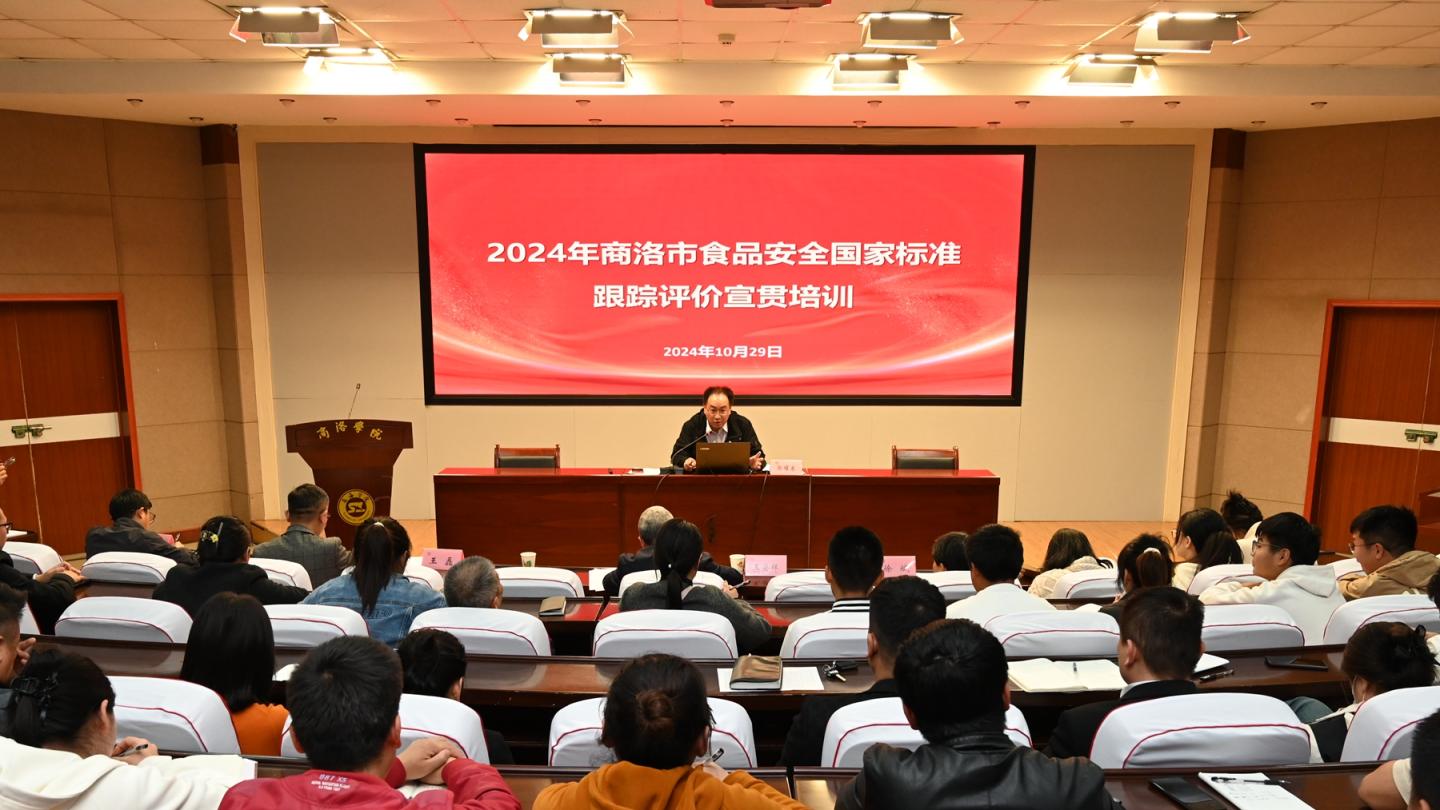 10月29日下午,2024年商洛市食品安全国家标准跟踪评价宣贯培训会在学校图书馆二楼报告厅举行,培训会由健康管理学院与商洛市卫生健康执法支队联合举办。商洛市卫生健康执法支队三级调研员王安祥参加培训会并讲话。健康管理学院院长郭耀东博士为全体参会人员进行专题培训。培训会议由健康管理学院党委副书记、纪委书记、副院长杨宪华主持。