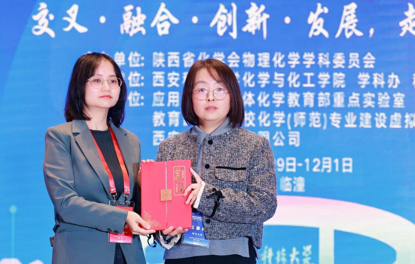 本次会议展出了来自省内20余所科研院校提交的78份墙报,其中16份墙报获奖,元春梅等参与指导制作的墙报“基于席夫碱配体的稀土多核配合物的研究及应用”获得三等奖。陕西师范大学光化学领域专家马佳妮教授为元春梅颁发了大会邀请报告荣誉证书。