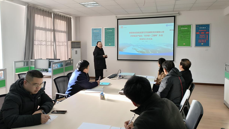 活动现场,团队负责人刘明宝教授以“绿色高效萤石浮选捕收剂体系的研发”为题向与会专家详细汇报了“科学家+工程师”项目进展情况、目前取得的成果及下一步工作计划。咸阳双佰科技有限责任公司总经理孙明结合实践经验分享了药剂研发的实用性案例,并就项目进展过程中的相关问题给出了建议。