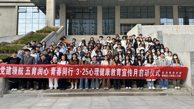 3月25日,经济管理学院举行2025年“党建领航 五育润心 青春同行”心理健康教育季启动仪式。学院党委副书记李川川、全体辅导员及学生代表200余人参加启动仪式。