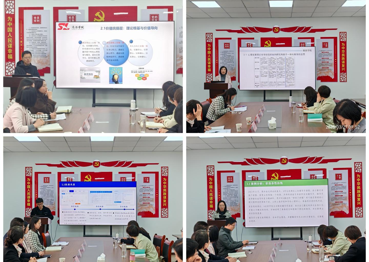 研讨环节,副院长杨宪华以《大中小学心理健康教育一体化建设研究》为题探讨了大中小学心理健康教育一体化建设的路径。金敏聚焦《大中小学心理健康课程教学分级实施探索与实践》,分享了课程分级设计的实践经验。樊聪以《新时代大学生心理健康发展趋势研究——基于CiteSpace可视化分析》为题,揭示了大学生心理健康发展的新特征及趋势。王然围绕《大学生非自杀性自伤行为危机干预研究》,深入剖析了这一现象的现状与干预策略。明秀兰教授结合新时代学生心理健康相关政策文件与工作案例,对发言教师的专题报告进行指导点评。