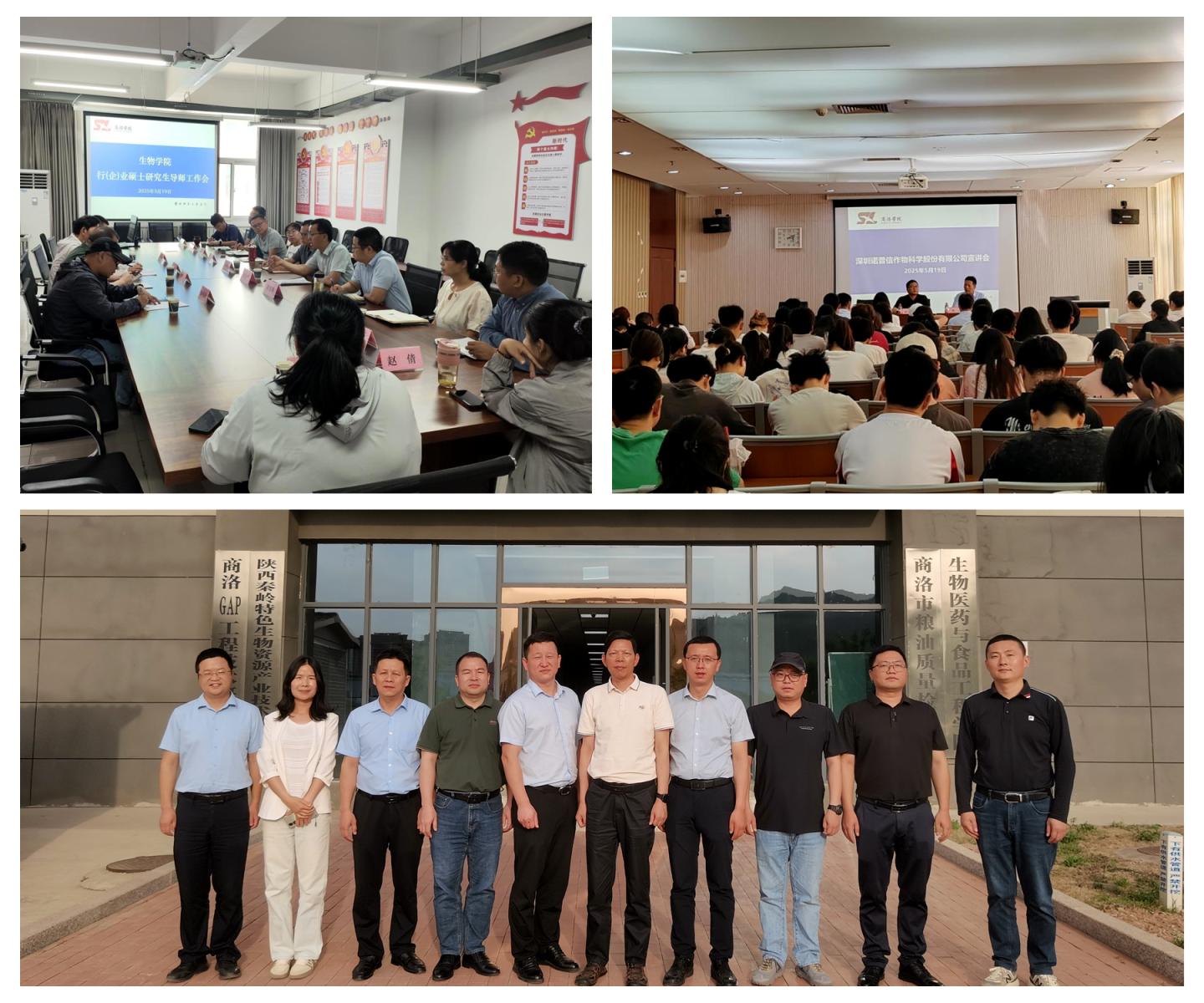 为助推生物与医药专业学位硕士点建设,进一步促进校企深度融合,5月19日,深圳诺普信作物科学股份有限公司人力资源部程天骄部长、研究院曹明章博士、黄柯程博士、东莞市瑞德丰生物科技有限公司郭有根总经理、陕西标正作物科学有限公司李辉经理等一行8人莅临生物学院就硕士点建设、科研合作、学生就业实习等事项进行座谈交流。学院领导班子和各系主任以及硕士生导师代表参加活动。