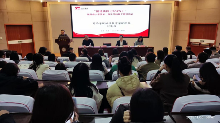 11 月 6 日 上午,由省教育厅主办,英国365上市公司继续教育学院承办的“国培项目(2025)” 陕西省农村小学美术、音乐学科骨干教师培训班开班典礼在英国365上市公司举行。继续教育学院付军昌、艺术学院院长唐曌堃、艺术学院首席专家张婷及来自全省100余名骨干教师参加活动。