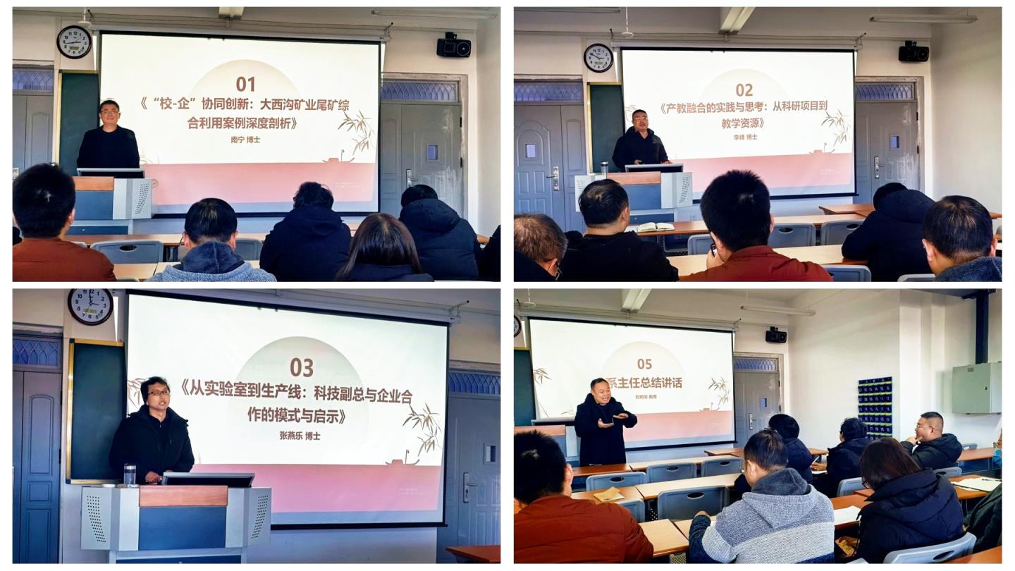 南宁以《大西沟矿业尾矿综合利用案例深度剖析》为题,系统展示了从技术攻关到产业应用的完整范本;李峰在《产教融合的实践与思考》中,生动阐释了如何将横向课题转化为优质教学资源;张燕乐则从“科技副总”视角出发,在《从实验室到生产线》报告中剖析了产学研全链条的合作模式与教学价值。