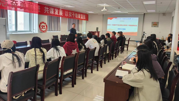 为进一步规范组织生活,加强党员和入党积极分子党性教育和党纪党规教育,推动党纪学习教育走深走实,5月9日,经济管理学院党委开展“党组织书记讲党纪学习教育主题党课”活动。院党委书记高扩昌以《新修订<中国共产党纪律处分条例》>》为题为经济管理学院学生党支部党员、预备党员、入党积极分子讲授专题党课。
